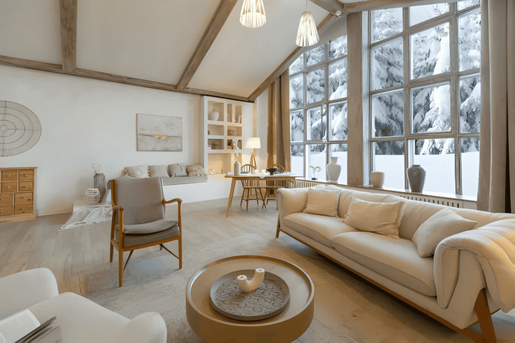 A bright living space designed with clean lines, warm tones and balanced layout choices that reflect expert design planning.