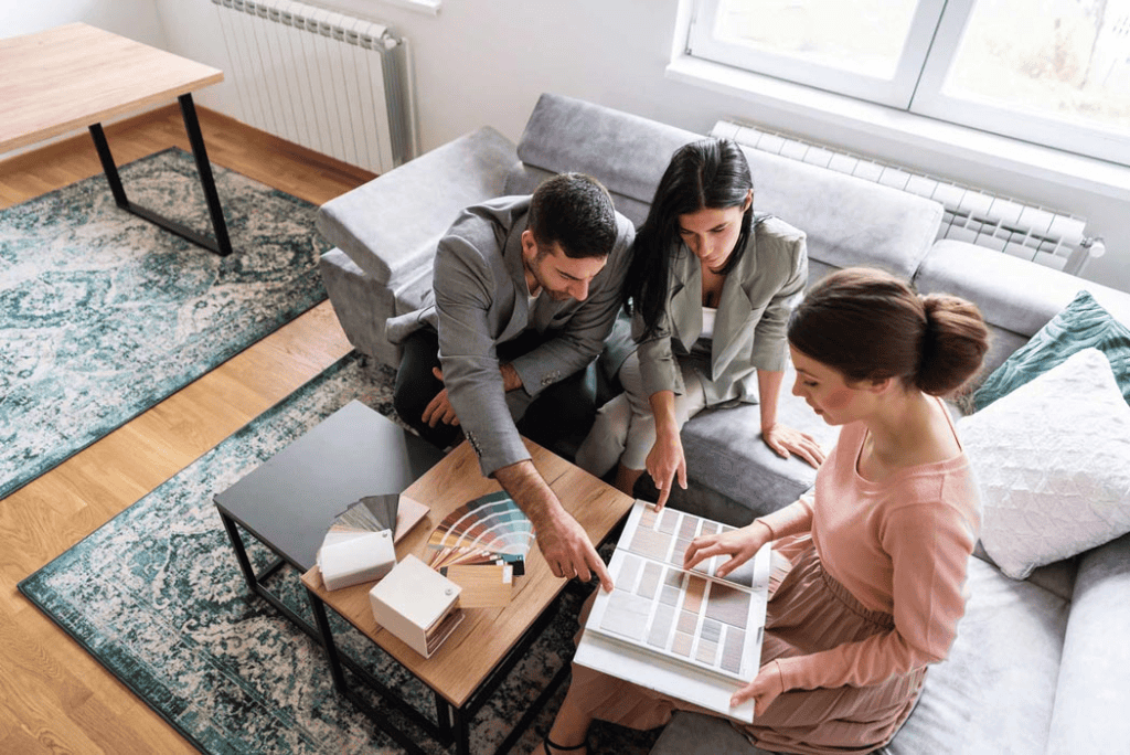 Homeowners reviewing material samples with a designer to plan a functional and well styled interior.